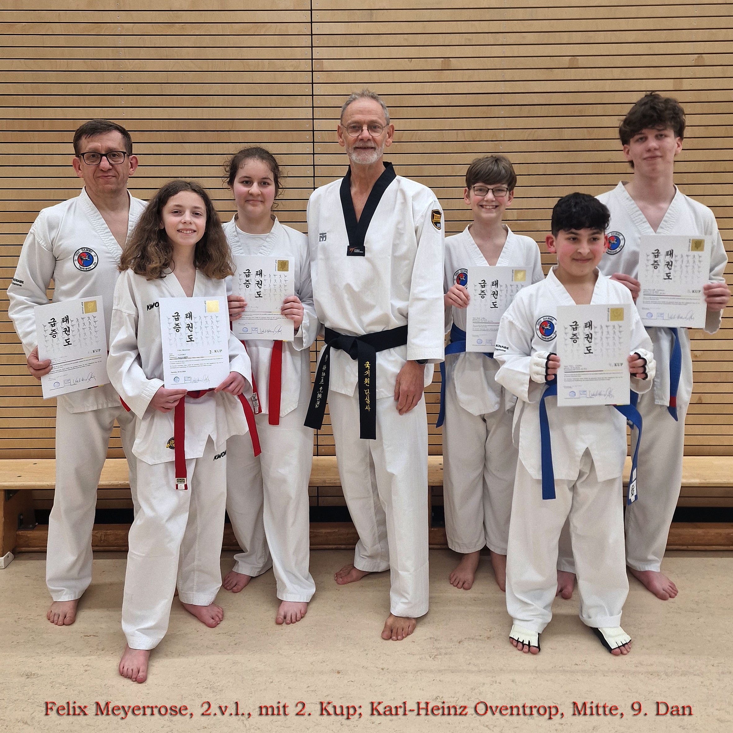 Am Ende der Prüfungen gab es für alle die Urkunden für ihre Erfolge. Felix hat somit bereits den 2. Kup erreicht.
